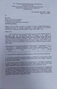 खाद्य, नागरिक आपूर्ति एवं उपभोक्ता मामलों की मंत्री रेखा आर्या ने बताया कि यह धनराशि राज्य को प्राप्त हो चुकी है। विभाग को निर्देश दिए गए हैं कि इसमें राज्य का अंश जोड़कर जल्द ही राशन विक्रेताओं के खातों में भुगतान किया जाए।